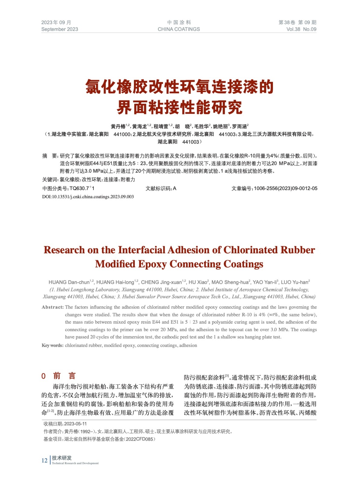 發表于2024-01-08 14:17:48| 次閱讀| 來源中國涂料| 作者黃丹椿,黃海龍,程靖萱,胡 曉,毛勝華,姚艷麗,羅雨涵