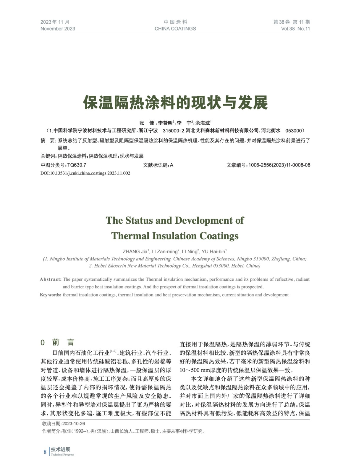 本文系作者@張 佳,李贊明,李 寧,余海斌 授權中國涂料網發表,并經中國涂料網編輯,未經允許不得轉載,如需轉載請聯系chinacoatingnet@vip.163.com