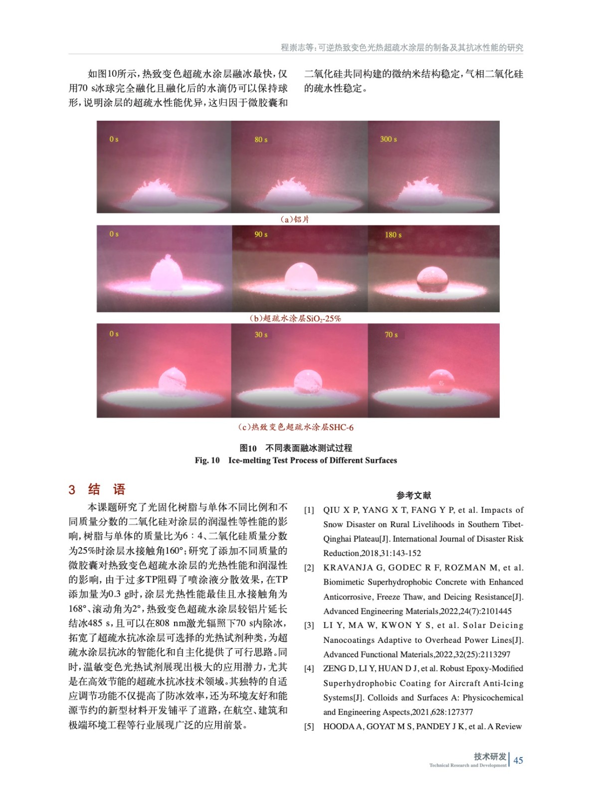 可逆熱致變色光熱超疏水涂層的制備及其抗冰性能的研究