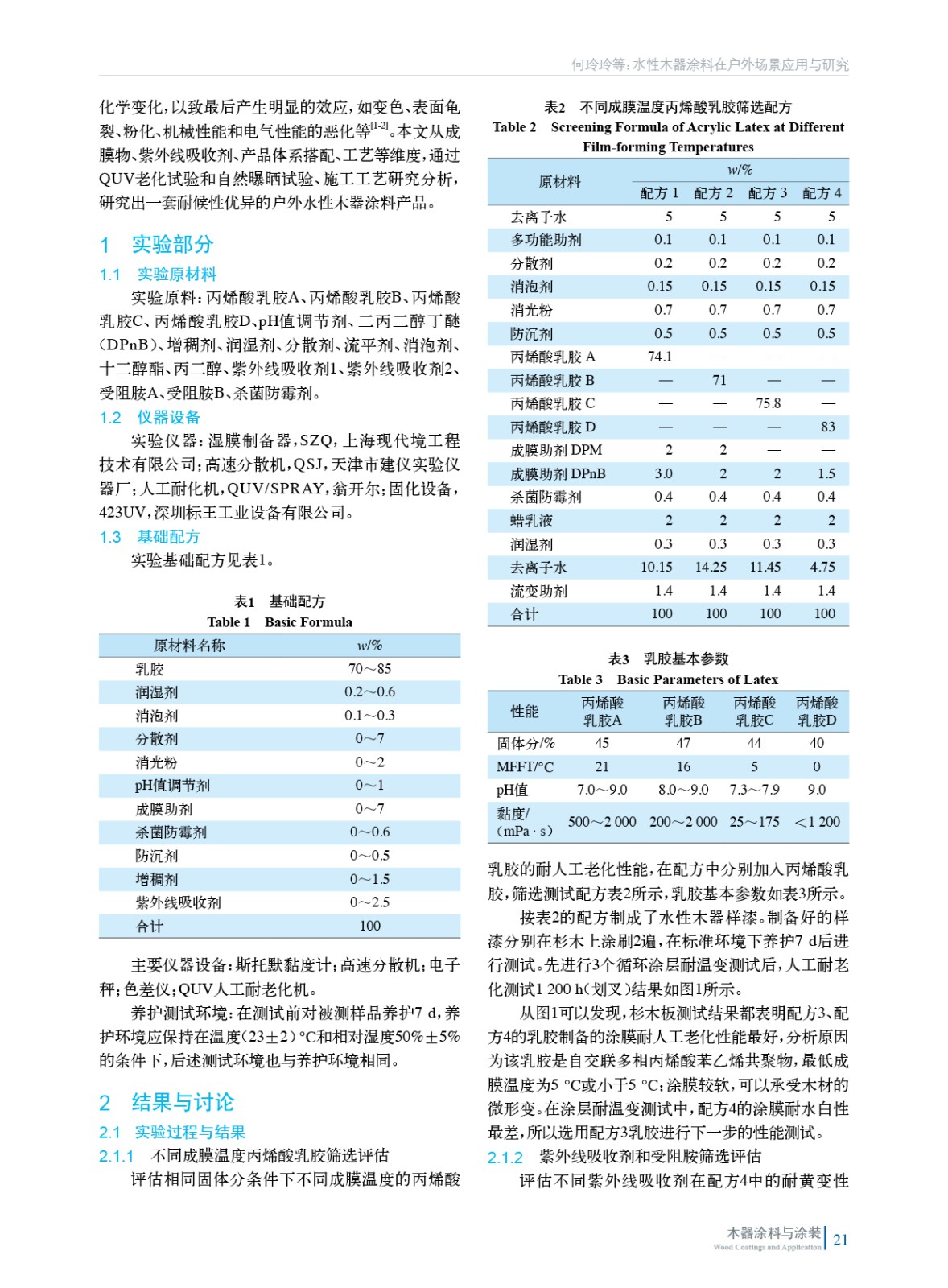 摘要:從成膜物、紫外線吸收劑、產品體系搭配、工藝等維度,通過QUV老化試驗和自然曝曬試驗、施工工藝研究分析,研究出一套耐候性優異的戶外水性木器涂料產品并對影響因素進行探討。