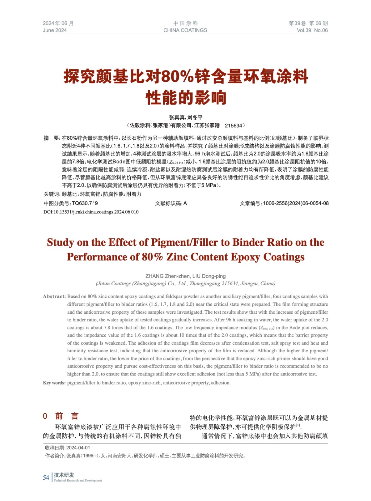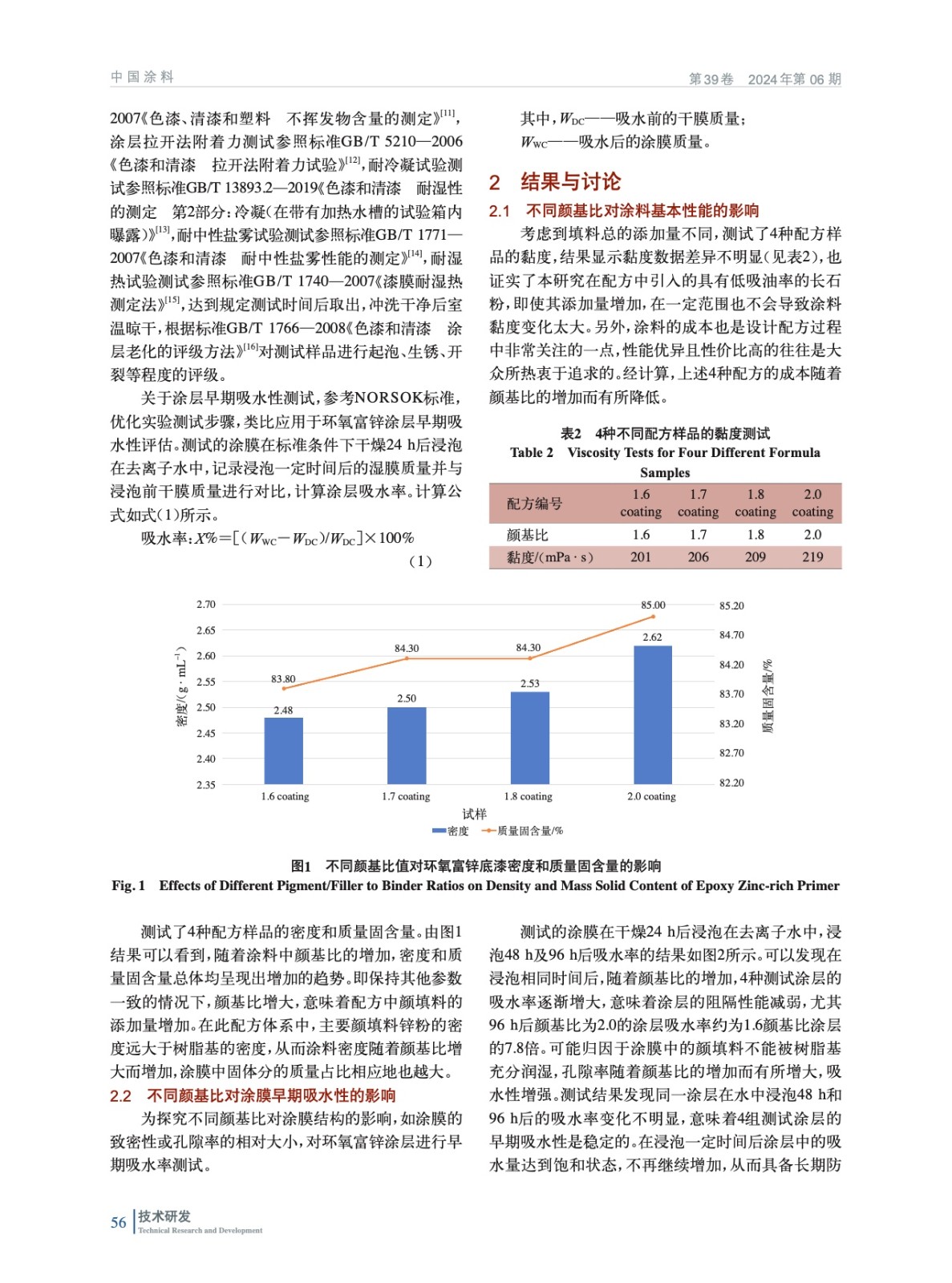 探究顏基比對(duì)80%鋅含量環(huán)氧涂料性能的影響