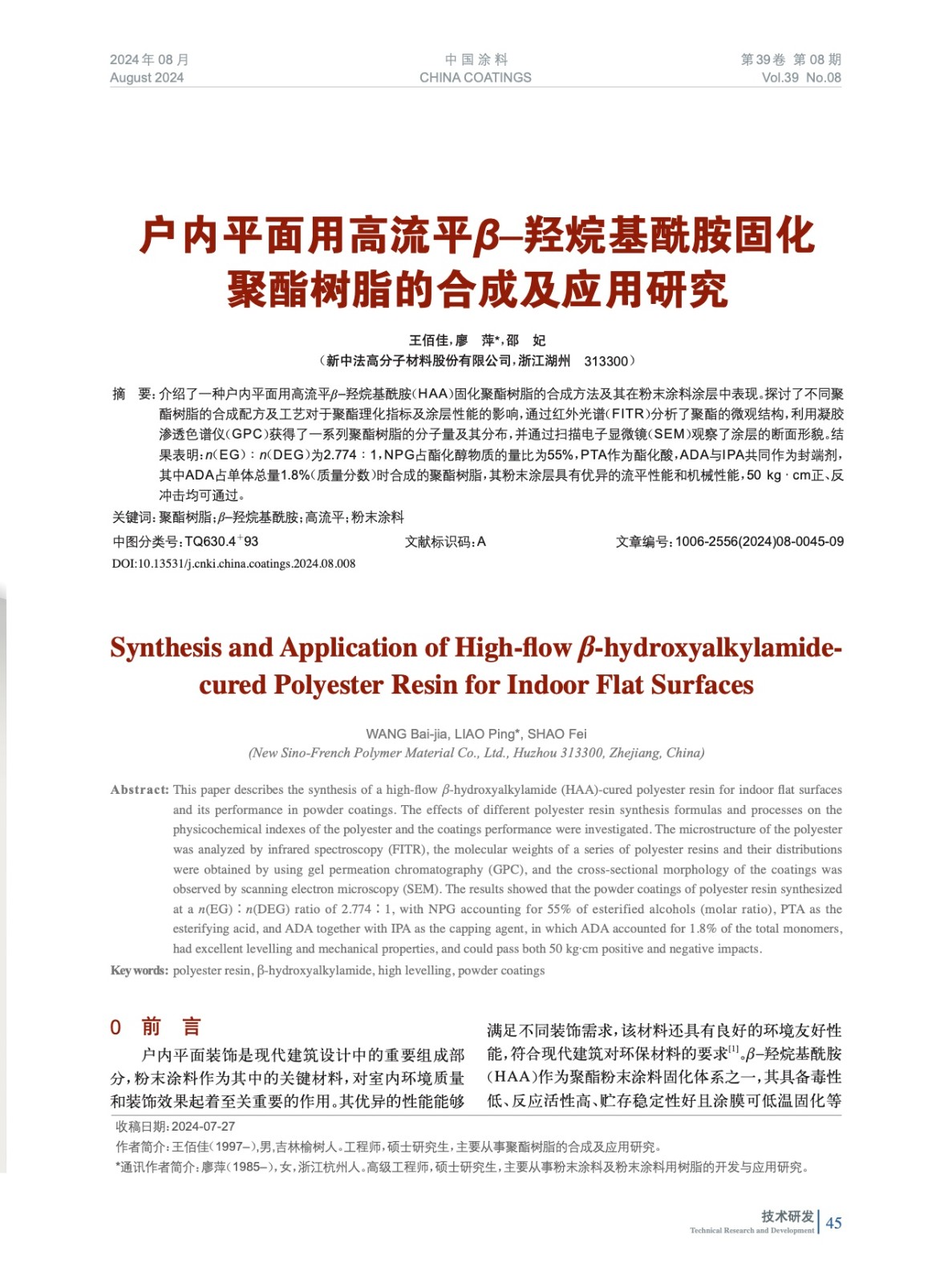 本文系作者@王佰佳,廖 萍,邵 妃 授權中國涂料網發表,并經中國涂料網編輯,未經允許不得轉載,如需轉載請聯系chinacoatingnet@vip.163.com