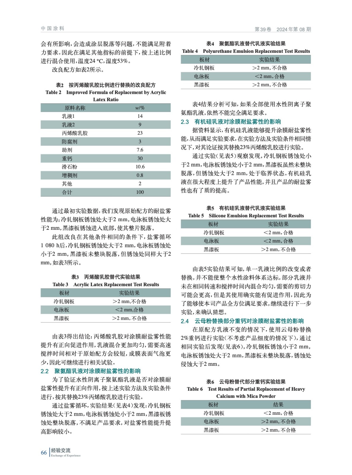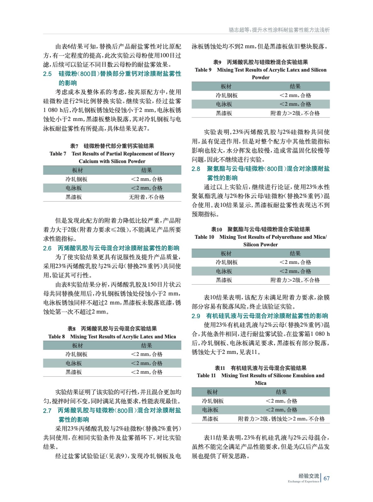 摘要:論證了不同材料對水性涂料耐鹽霧性能有著很大影響,如丙烯酸乳膠、聚氨酯乳液、有機硅樹脂、云母粉及耐鹽霧助劑的使用,均可以提高產(chǎn)品耐鹽霧性。主要研究水性涂膜在鹽霧箱中1 080 h的表現(xiàn),確認不同材料對耐鹽霧性能的提升有如何影響,在此基礎(chǔ)來改善汽車鋼板或者電泳板材料耐腐蝕性能,并在常溫固化的情況下滿足產(chǎn)品其他所需性能。