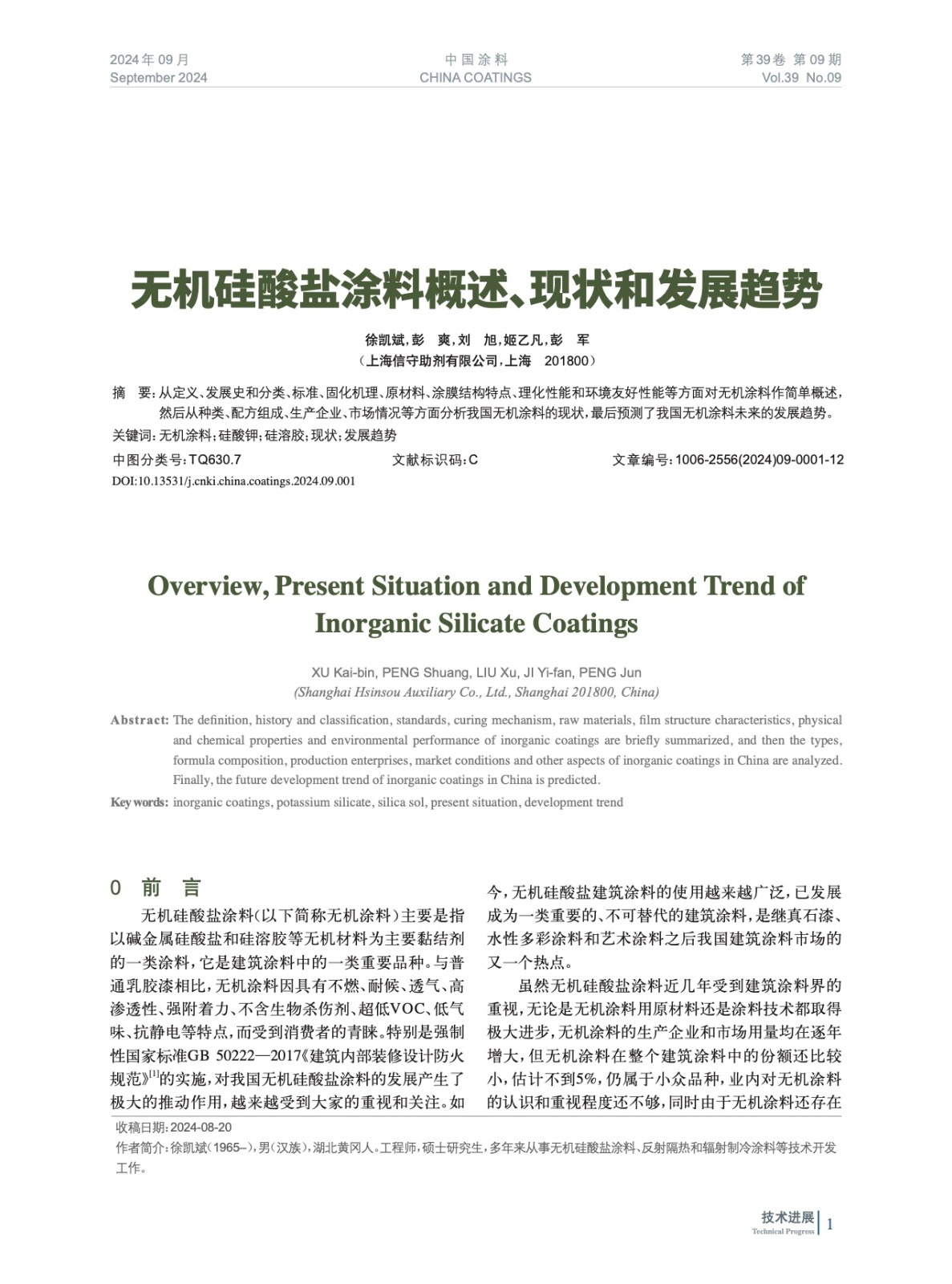 無機硅酸鹽涂料概述、現(xiàn)狀和發(fā)展趨勢
