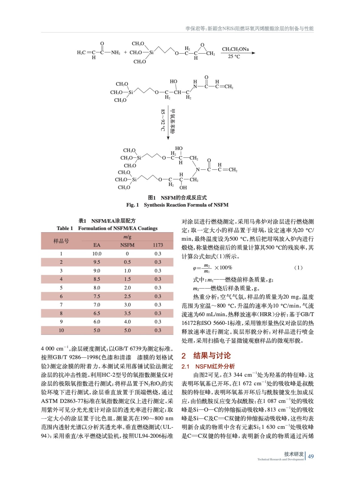 新穎含N和Si阻燃環氧丙烯酸酯涂層的制備與性能