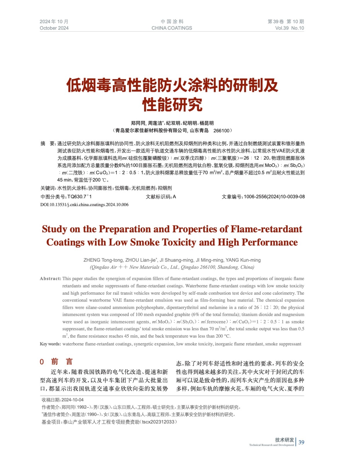 本文系作者@鄭同同, 周蓮潔,紀雙明,紀明明,楊昆明 授權中國涂料網發表,并經中國涂料網編輯,未經允許不得轉載,如需轉載請聯系chinacoatingnet@vip.163.com