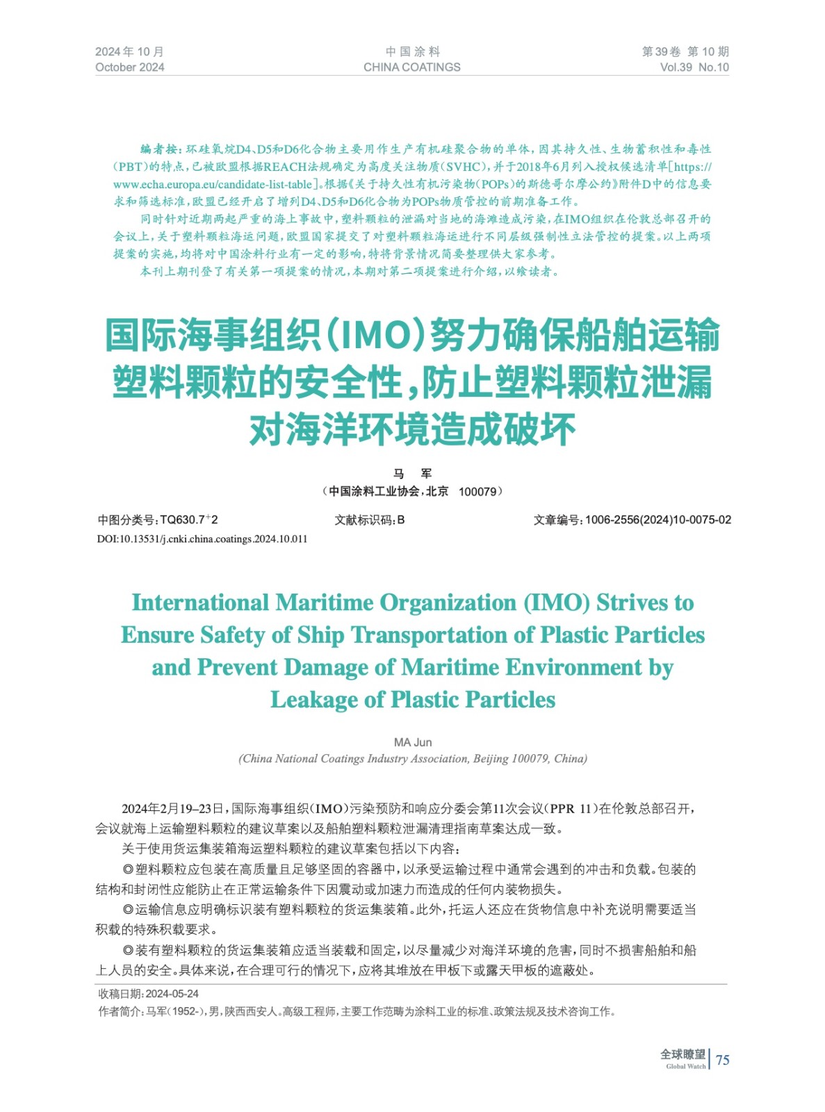 摘要:針對近期兩起嚴重的海上事故中,塑料顆粒的泄漏對當地的海灘造成污染,在IMO組織在倫敦總部召開的會議上,關于塑料顆粒海運問題,歐盟國家提交了對塑料顆粒海運進行不同層級強制性立法管控的提案。以上兩項提案的實施,均將對中國涂料行業有一定的影響,特將背景情況簡要整理供大家參考。本刊上期刊登了有關第一項提案的情況,本期對第二項提案進行介紹,以饗讀者。