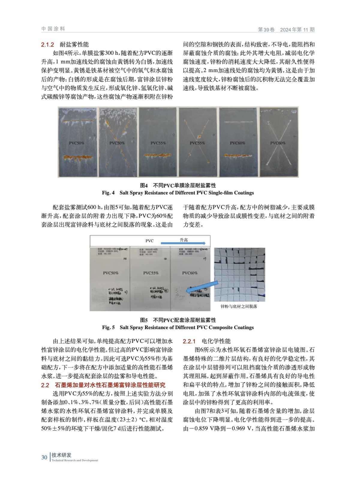 摘要:為改善現(xiàn)用水性環(huán)氧富鋅涂料對(duì)鐵基材的電化學(xué)保護(hù)性能,需提高富鋅涂層的導(dǎo)電性,且不能影響配套涂層的長(zhǎng)期防腐性能。通過(guò)提高配方中的顏料體積濃度(PVC),同時(shí)添加適量的高性能石墨烯漿料,制備了一種具有優(yōu)良電化學(xué)保護(hù)性能和防腐性能的水性環(huán)氧石墨烯富鋅涂料。在配方PVC調(diào)整到55%,高性能石墨烯水漿質(zhì)量分?jǐn)?shù)為3%的情況下,所制備的水性環(huán)氧石墨烯富鋅涂層的綜合性能最好,其配套涂層經(jīng)中性鹽霧試驗(yàn)2 000 h后依然具有良好的附著力,加速線附近起泡和擴(kuò)蝕現(xiàn)象較現(xiàn)用產(chǎn)品有明顯改善,劃線處單向擴(kuò)蝕≤1.5 mm。在保證涂層附著力的前提下提高配方PVC,添加適量的高性能石墨烯漿料,提升了鋅粉的利用效率,改善涂層電化學(xué)性能的同時(shí)兼顧了涂層綜合性能的提升,全面改善整體配套的防腐性能,延長(zhǎng)了配套涂層使用壽命。