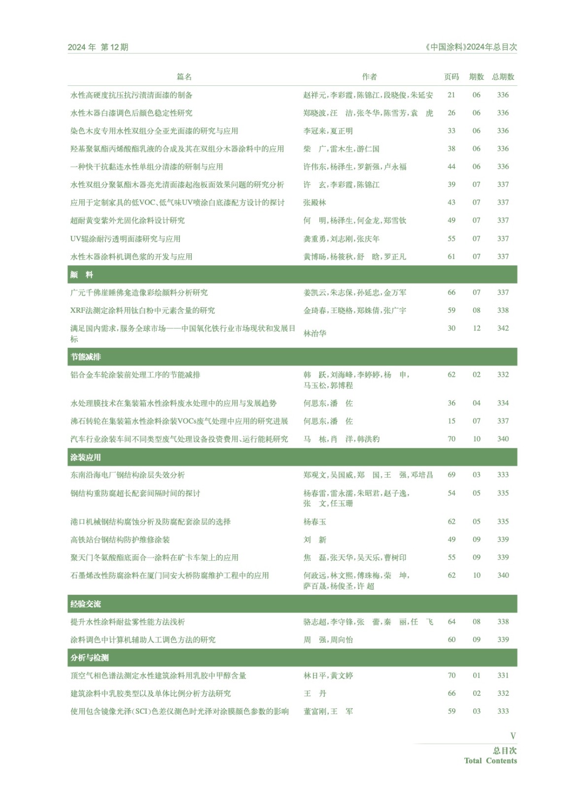 Ⅰ-Ⅵ《中國涂料》2024年總目次