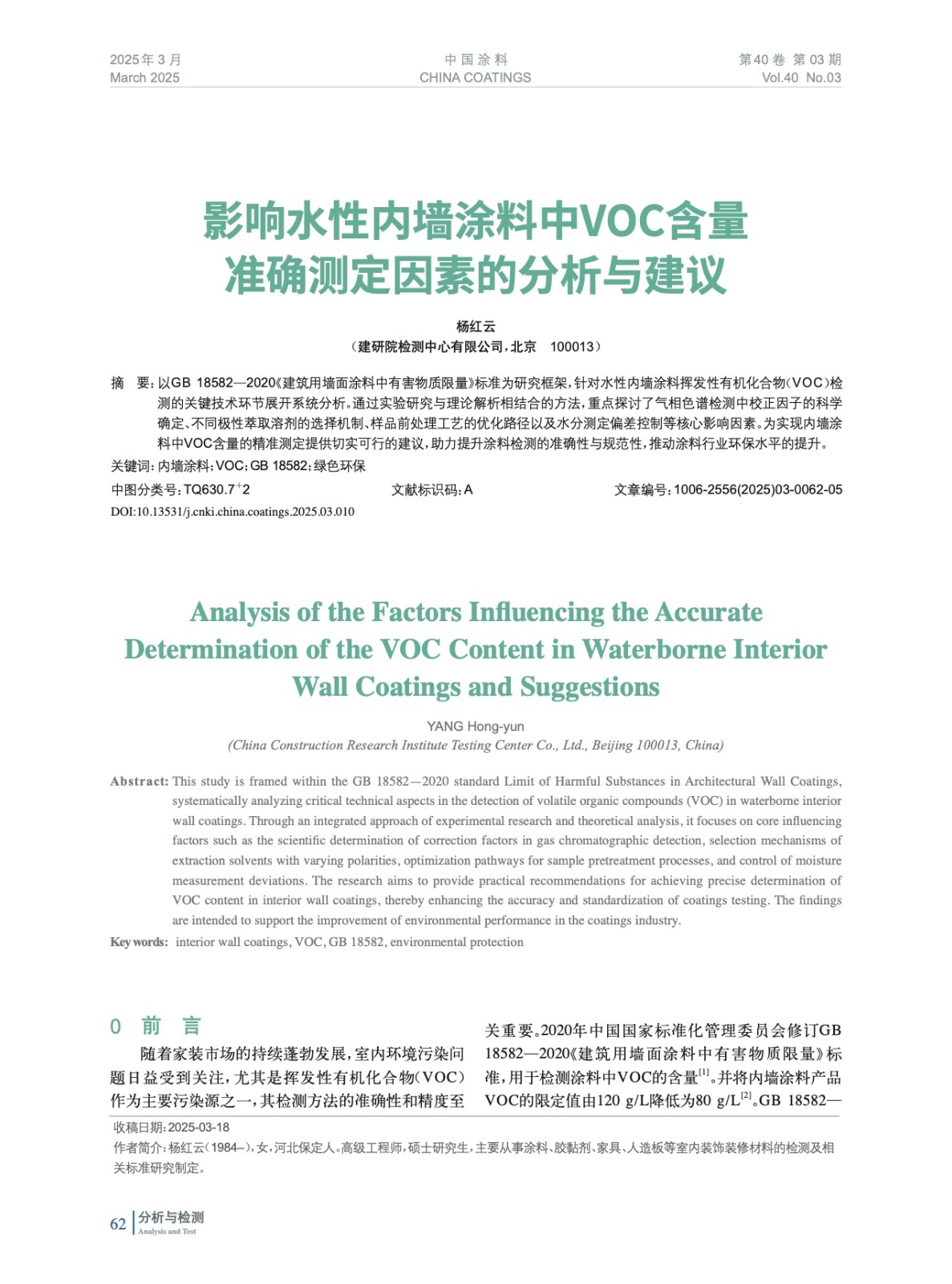 摘要:以GB 18582—2020《建筑用墻面涂料中有害物質限量》標準為研究框架,針對水性內墻涂料揮發性有機化合物(VOC)檢測的關鍵技術環節展開系統分析。通過實驗研究與理論解析相結合的方法,重點探討了氣相色譜檢測中校正因子的科學確定、不同極性萃取溶劑的選擇機制、樣品前處理工藝的優化路徑以及水分測定偏差控制等核心影響因素。為實現內墻涂料中VOC含量的精準測定提供切實可行的建議,助力提升涂料檢測的準確性與規范性,推動涂料行業環保水平的提升。