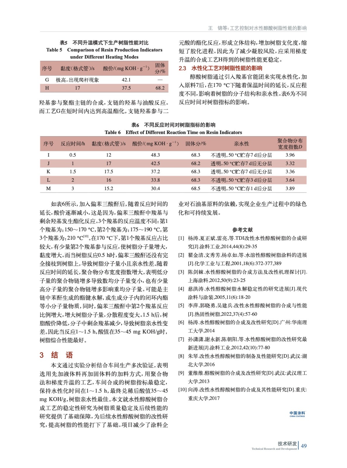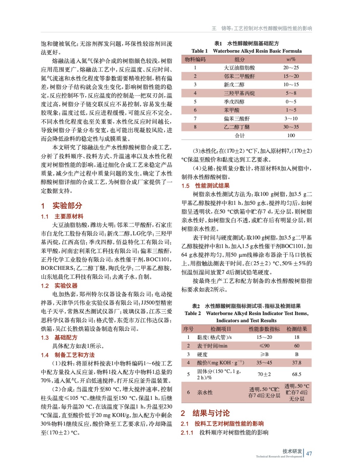 工藝控制對(duì)水性醇酸樹(shù)脂性能的影響