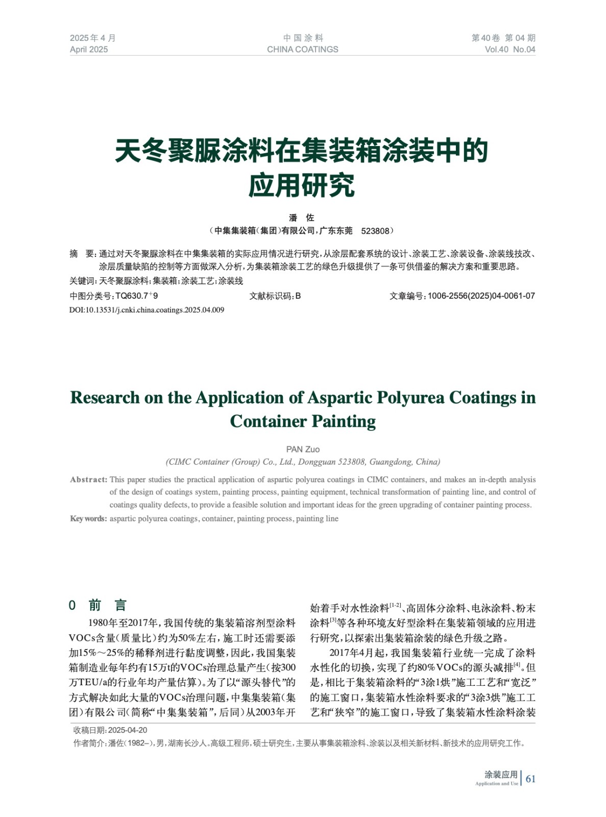 天冬聚脲涂料在集裝箱涂裝中的應(yīng)用研究