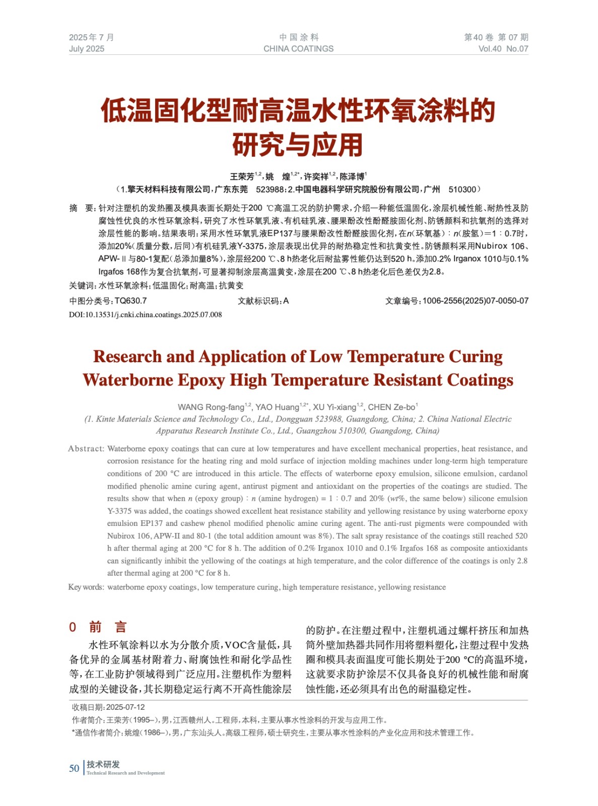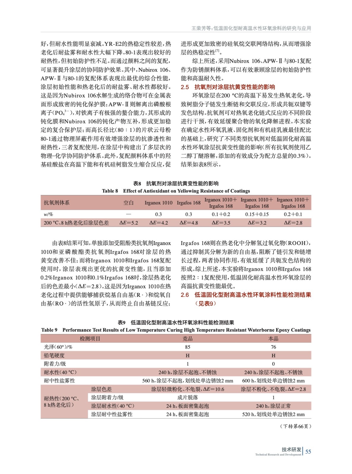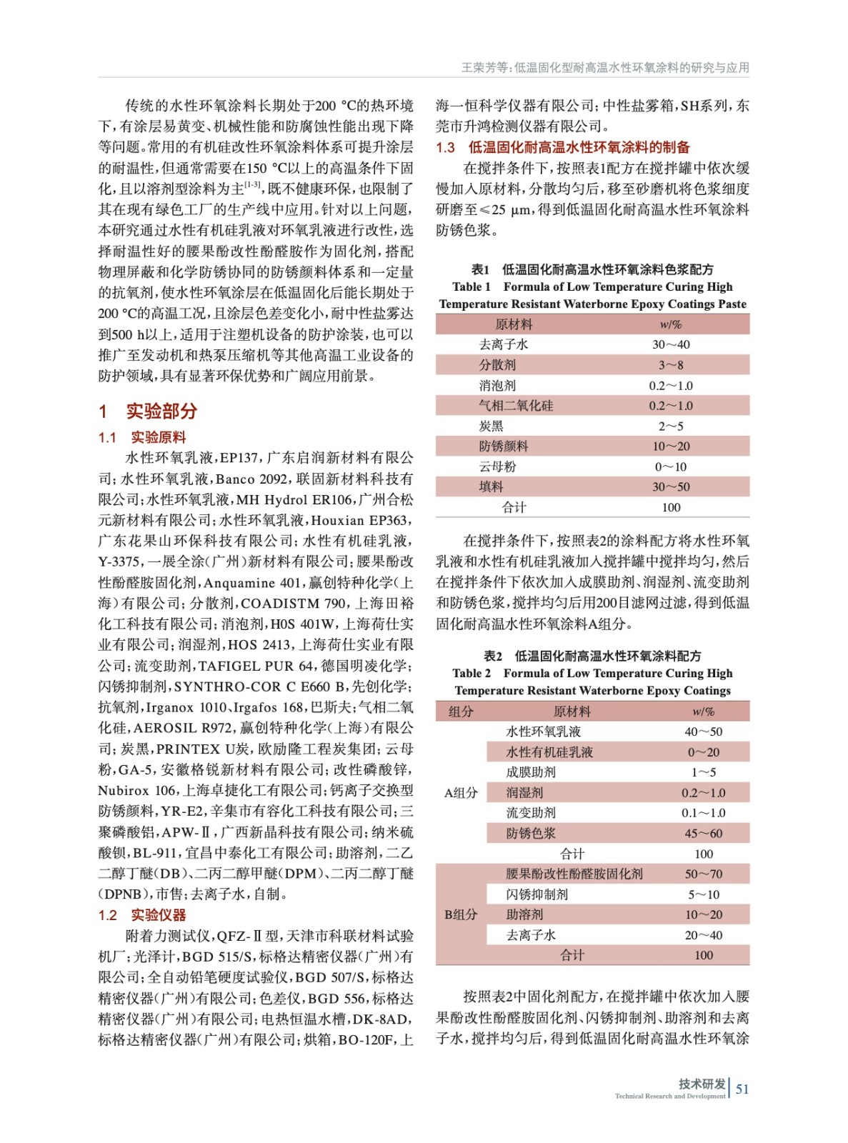 低溫固化型耐高溫水性環(huán)氧涂料的研究與應(yīng)用