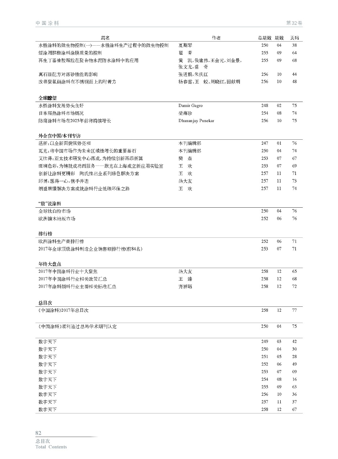 《中國(guó)涂料》2017年總目次