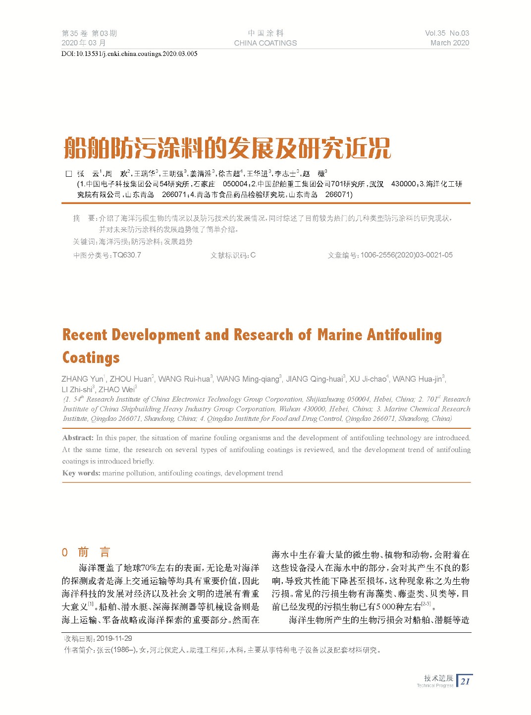 本文系作者@張 云,周 歡,王瑞華,王明強(qiáng),姜清淮,徐吉超,王華進(jìn),李志士,趙 薇 授權(quán)中國(guó)涂料網(wǎng)發(fā)表,并經(jīng)中國(guó)涂料網(wǎng)編輯,未經(jīng)允許不得轉(zhuǎn)載,如需轉(zhuǎn)載請(qǐng)聯(lián)系chinacoatingnet@vip.163.com