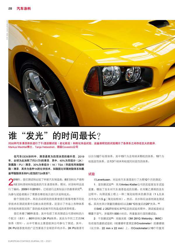 摘要:對(duì)95種汽車清漆體系進(jìn)行了干/濕刮擦試驗(yàn)(老化前后)和耐化學(xué)品試驗(yàn)。該基準(zhǔn)研究的試驗(yàn)揭示了各體系之間存在巨大的差異。