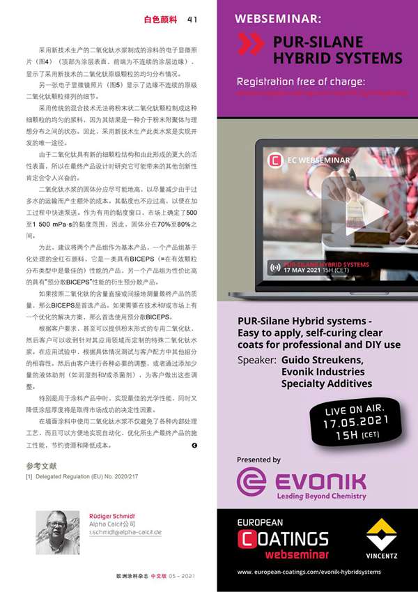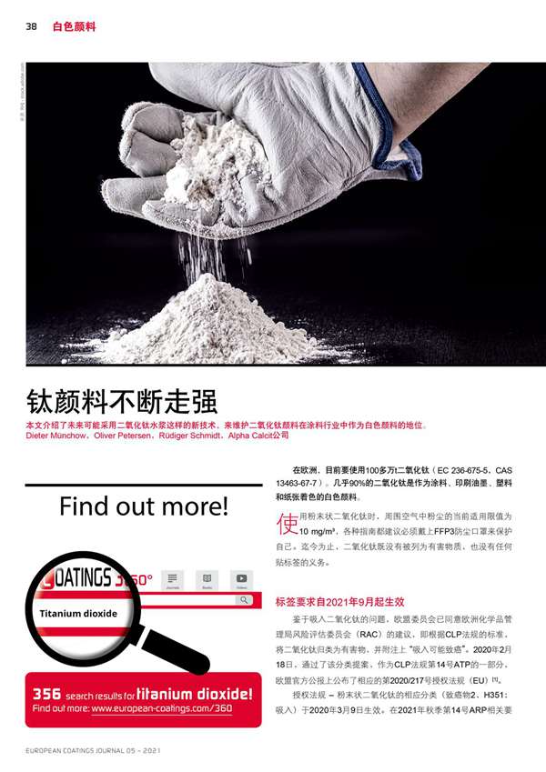 本文介紹了未來可能采用二氧化鈦水漿這樣的新技術,來維護二氧化鈦顏料在涂料行業中作為白色顏料的地位。