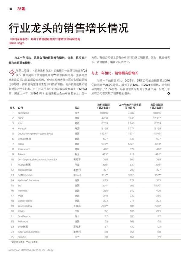 銷售額最高的25家歐洲涂料制造商