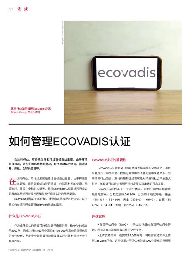 涂料行業如何管理EcoVadis認證?