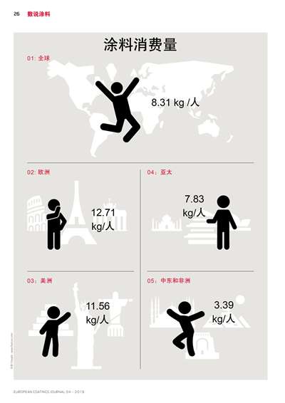 各地區人均涂料消費量