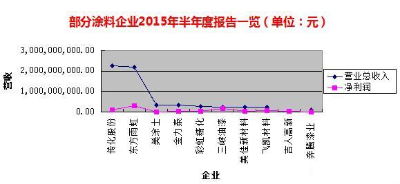 2015年上半年我國涂料產量呈微弱增長之勢,在競爭日益激烈,利潤愈加稀薄,市場占有率越來越低的情況下,涂料消費稅、環保等政策法規卻沒有等待各大涂料企業轉型便已襲來,那么在如此嚴峻的市場情況下,我國的涂料企業上半年的經營情況如何呢?日前部分上市涂料企業紛紛發布了2015年上半年報告,筆者緊跟趨勢,為大家整理了部分涂料企業2015年營收利潤情況,以供各位涂料人士參考借鑒: