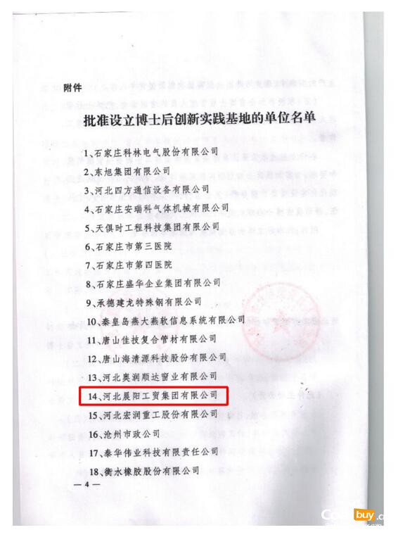 根據(jù)博士后工作總體規(guī)劃,經(jīng)專家評議,河北省人力資源和社會保障廳、省博士后管理委員會研究決定,批準河北晨陽工貿(mào)集團有限公司等30個單位設(shè)立博士后創(chuàng)新實踐基地,開展博士后工作。