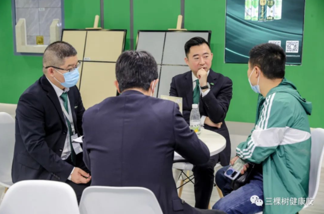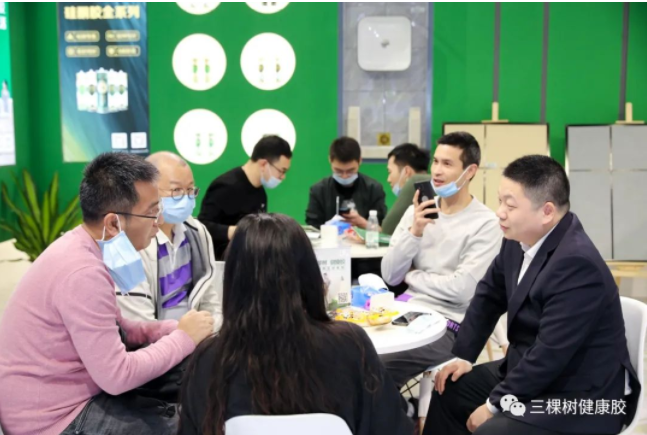 三棵樹健康膠本次參展旨在展示三棵樹的品牌力,擴大行業(yè)影響力,同時吸引更多優(yōu)秀的合作伙伴同頻共振,投入到三棵樹的偉大事業(yè)中。經(jīng)過緊鑼密鼓的籌備,三棵樹健康膠以其高端的品牌形象與高品質(zhì)的產(chǎn)品亮相展會,現(xiàn)場進(jìn)入展館的觀眾絡(luò)繹不絕,三棵樹憑借其高標(biāo)準(zhǔn)的接待和服務(wù)給來訪觀眾留下了深刻的印象,交流熱情高漲。