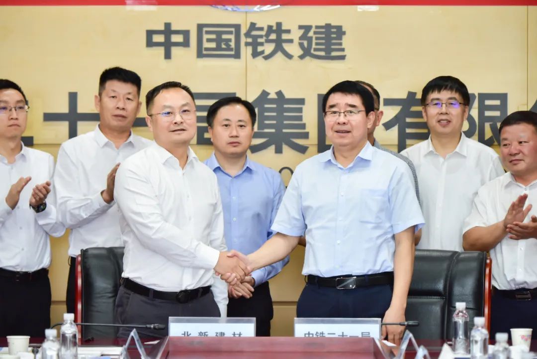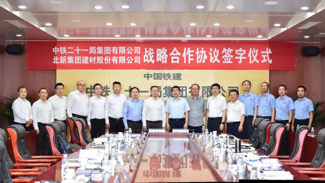中鐵二十一局集團、西部鐵建工程材料科技有限公司和北新建材有關(guān)部門、單位負(fù)責(zé)同志參加簽約儀式和座談。中鐵二十一局集團有限公司隸屬國務(wù)院國資委下屬的中國鐵建股份有限公司,是集工程建設(shè)、科技研發(fā)、房地產(chǎn)開發(fā)、礦產(chǎn)資源開發(fā)及商貿(mào)經(jīng)營等于一體的國有特大型建筑企業(yè)集團。擁有施工機械、檢測等設(shè)備4137余臺(套),年度施工能力400億元以上。先后完成了青藏鐵路等60多項國家鐵路干線工程建設(shè)、13000多條公里電氣化鐵路工程建設(shè),都汶高速等40多條高等級公路建設(shè)。曾先后榮獲中國建筑工程魯班獎、詹天佑獎、廣廈獎、國家優(yōu)質(zhì)工程金(銀)獎、全國百項精品工程獎30多項;榮獲省(部)級優(yōu)質(zhì)工程獎60多項;榮獲國家、省部級科技進步獎30多項,其中國家科技進步特等獎1項;國家和省部級工法40多項、專利130多項,其中發(fā)明專利30多項,創(chuàng)中國建筑施工企業(yè)新紀(jì)錄6項。