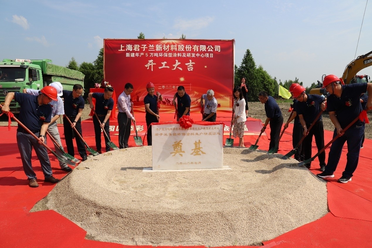 7月27日上午,上海君子蘭新材料股份有限公司新建環保涂料研發生產基地開工奠基儀式在上海市青浦區成功舉行。