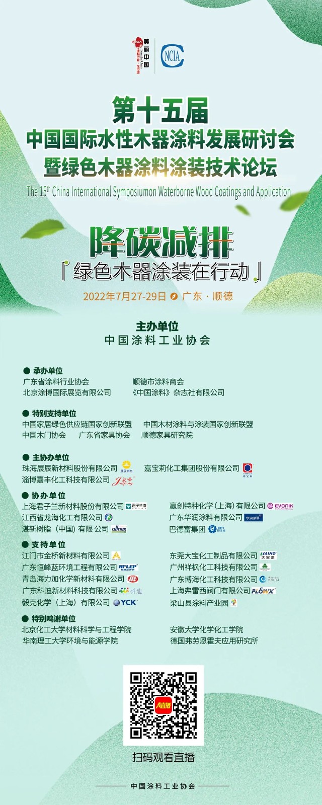 本屆研討會(huì)以“降碳減排,綠色木器涂裝在行動(dòng)“為主題,與對(duì)接會(huì)趨向一致,積極貫徹新發(fā)展理念,倡導(dǎo)綠色低碳生產(chǎn)生活方式,助力實(shí)現(xiàn)“碳達(dá)峰”、“碳中和”目標(biāo),落實(shí)《中國(guó)涂料行業(yè)“十四五”規(guī)劃》,以推動(dòng)環(huán)境友好型木器涂料涂裝的發(fā)展。