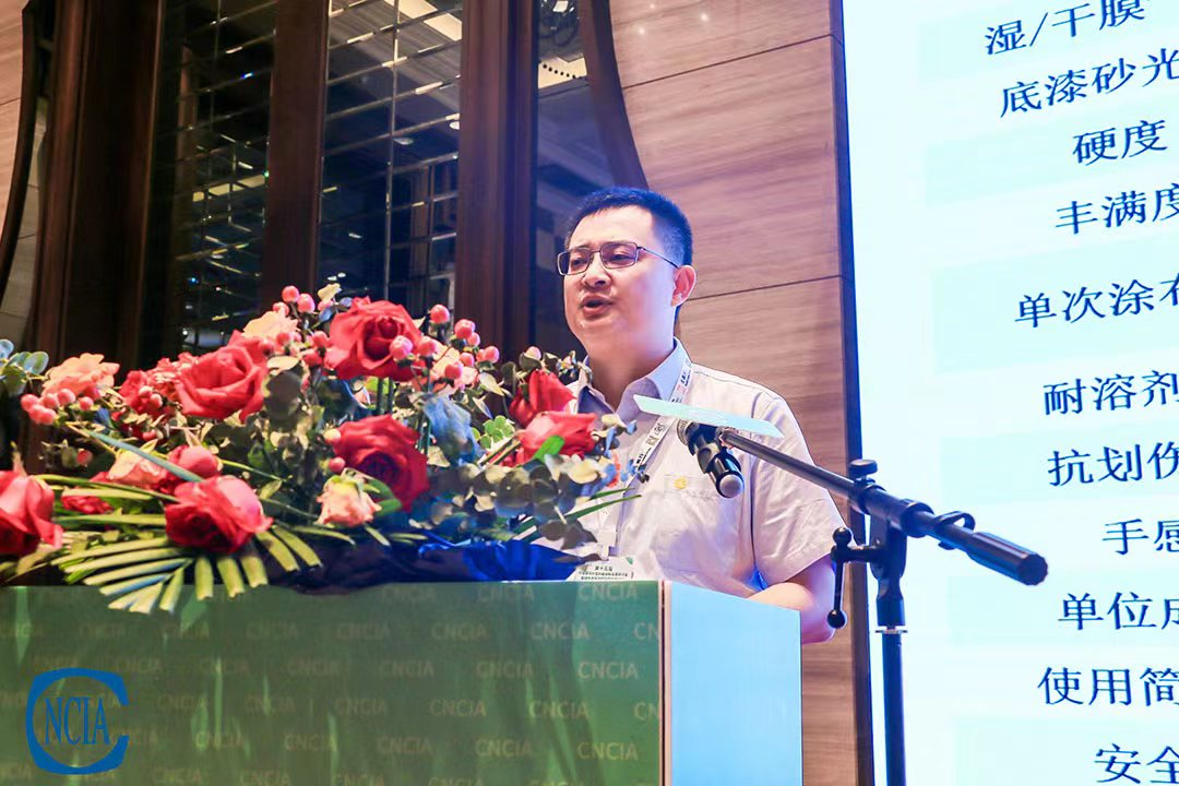 在會上,展辰技術管理中心涂料研發部經理夏正明還為大家帶來了《降碳減排—木器綠色涂裝創新方案分享》的主題演講,從實際應用角度講解水性木器涂料降碳減排的新思路和新工藝。