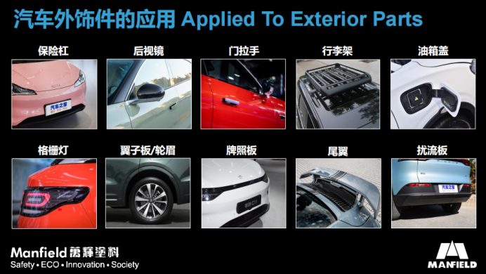 萬輝汽車內外飾涂料被廣泛應用于納米BOX的前后保險杠、尾翼、行李架和裝飾條等部件,并為之提供了完美的顏色匹配、高端涂層質感與優異的涂料性能。