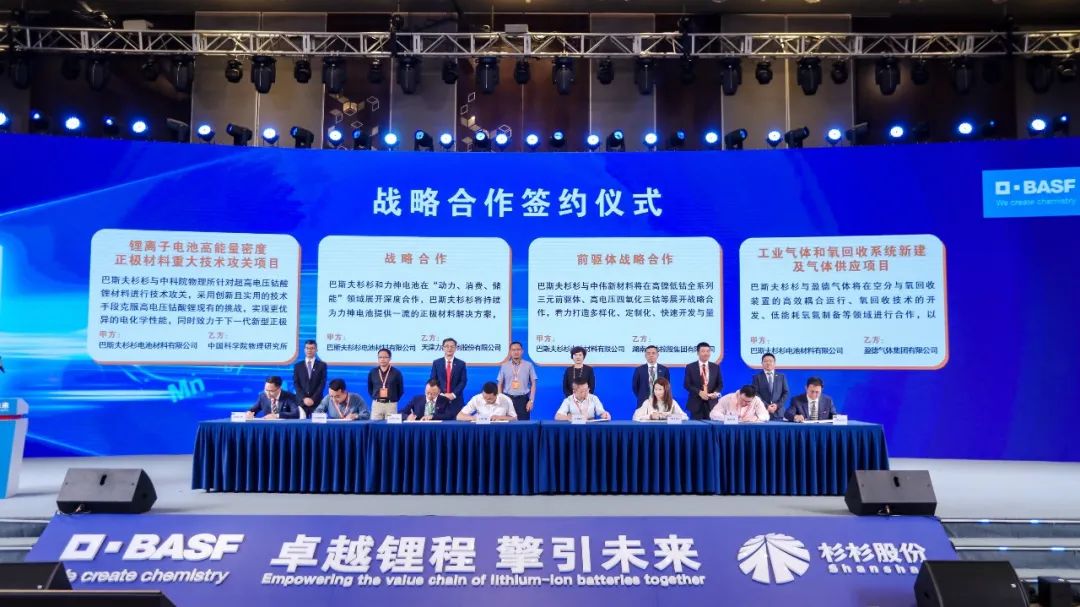 本次活動中,巴斯夫杉杉還與多家核心客戶、重要供應商、產學研合作單位及技術合作單位完成了戰略合作協議簽約儀式,攜手共建可持續發展且負責任的電池材料供應鏈。戰略合作協議的簽署將幫助巴斯夫杉杉進一步提升技術和成本競爭力。