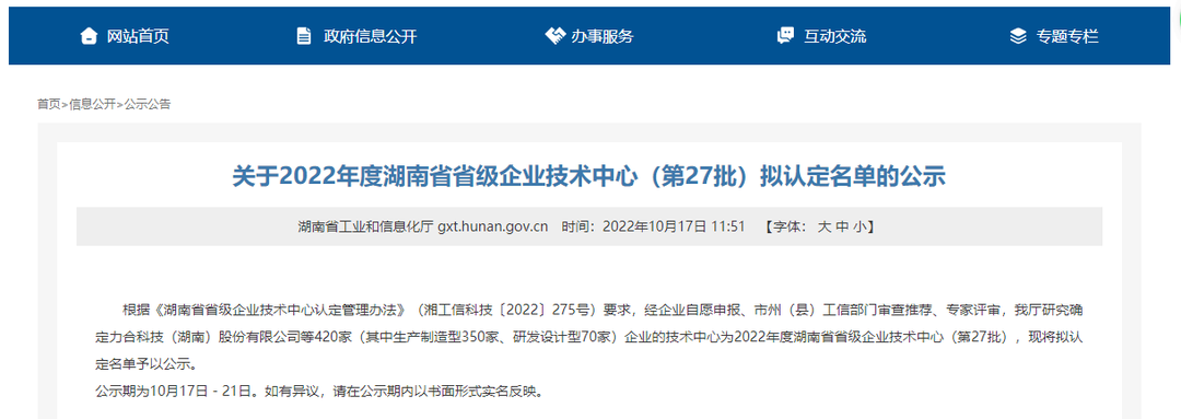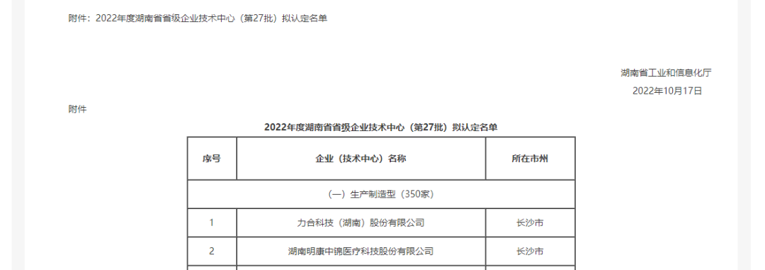 日前, 省工業和信息化廳研究確定420家企業的技術中心為2022年度湖南省省級企業技術中心,認定名單現已完成公示,湖南新威凌新材料有限公司入選。