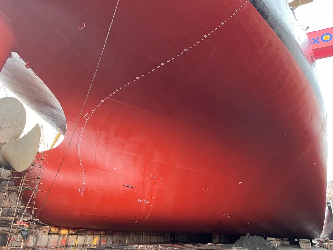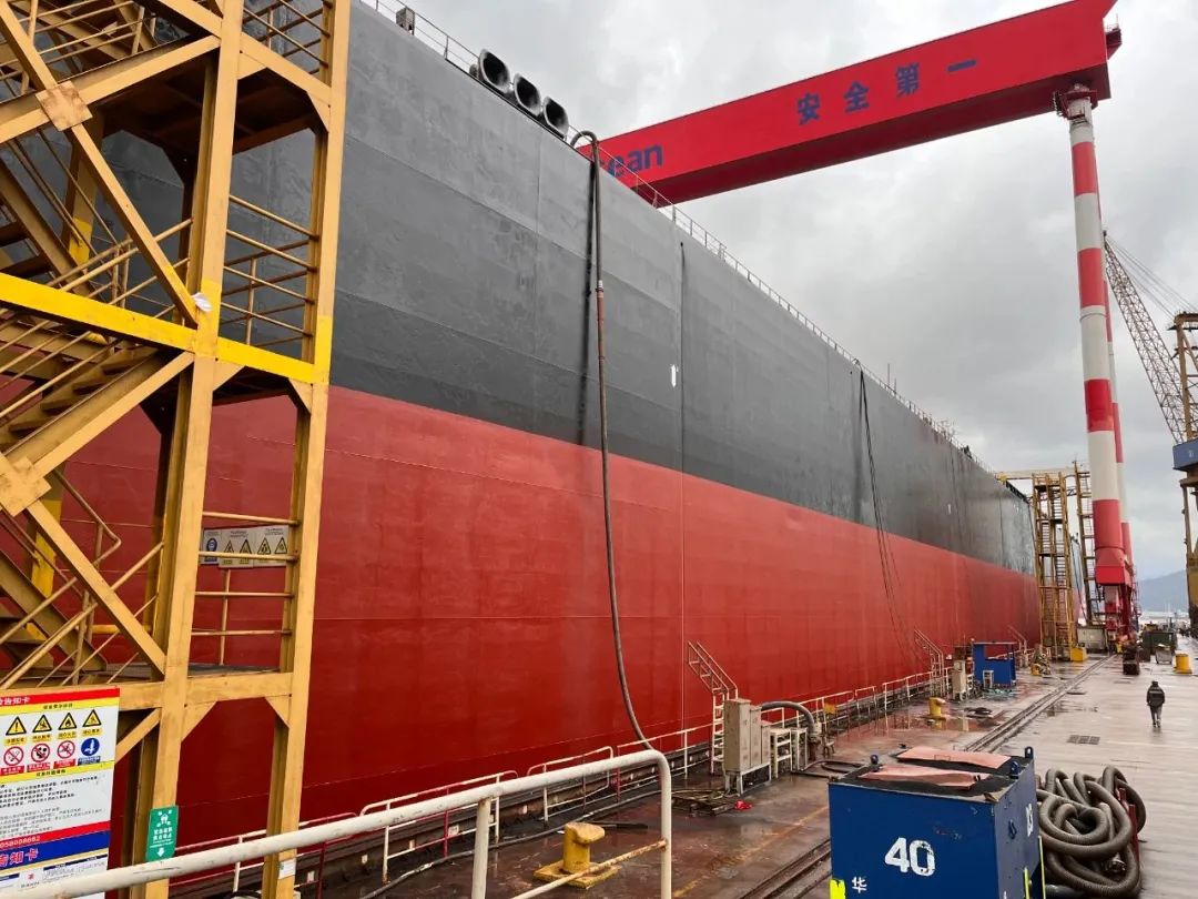 日前,魚童漆助力的30萬載重噸超大型油船(VLCC),在太平洋海洋工程有限公司的巨型船塢內完成塢修保養。