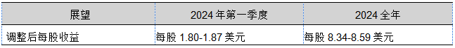 基于當(dāng)前的全球經(jīng)濟(jì)活動、疲軟的工業(yè)生產(chǎn)、歐洲的需求穩(wěn)定、墨西哥的持續(xù)增長和中國的需求改善,公司對2024年第一季度及全年做出如下預(yù)測: