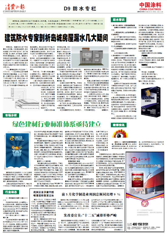 中國涂料報(bào) 2014年7月10日 星期四