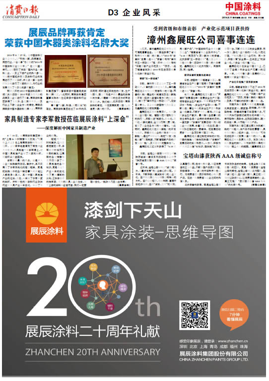 展辰品牌再獲肯定 榮獲中國木器類涂料名牌大獎