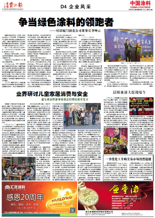 《中國涂料報》(電子版)的一切內容(包括但不限于文字、圖片、PDF、圖表、標志、標識、商標、版面設計、專欄目錄與名稱、內容分類標準以及為讀者提供的任何信息)僅供中國涂料信息網讀者閱讀、學習研究使用,未經中國涂料雜志社有限公司及/或相關權利人書面授權,任何單位及個人不得將《中國涂料報》(電子版)所登載、發布的內容用于商業性目的,包括但不限于轉載、復制、發行、制作光盤、數據庫、觸摸展示等行為方式,或將之在非本站所屬的服務器上作鏡像。否則,中國涂料雜志社有限公司將采取包括但不限于網上公示、向有關部門舉報、訴訟等一切合法手段,追究侵權者的法律責任。