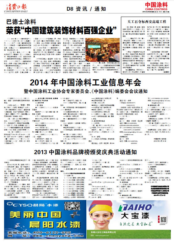 中國涂料報 2014年6月26日 星期四